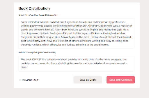 Once the author completes the Cover Design section, the next step is to fill in the Book Distribution section.